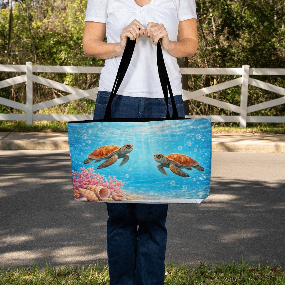 Carry a piece of the ocean with you wherever you go with this breathtaking Tropical Sea Turtle Paradise Tote Bag. Featuring two graceful sea turtles gliding through crystal-clear turquoise waters, this design captures a magical underwater moment filled with life, light, and serenity.