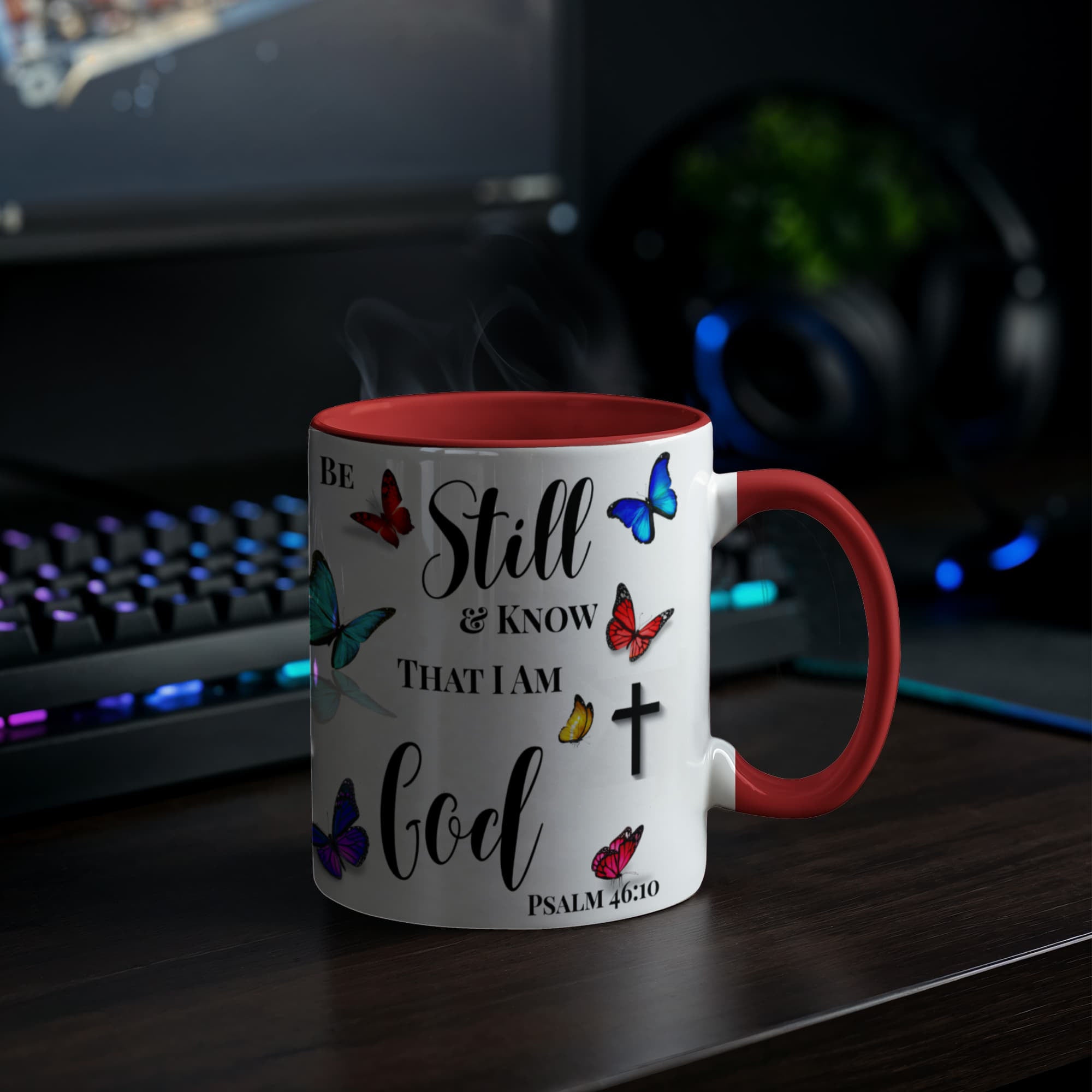 Peace in Every Sip, "Be Still And Know" - Color Accent Mug