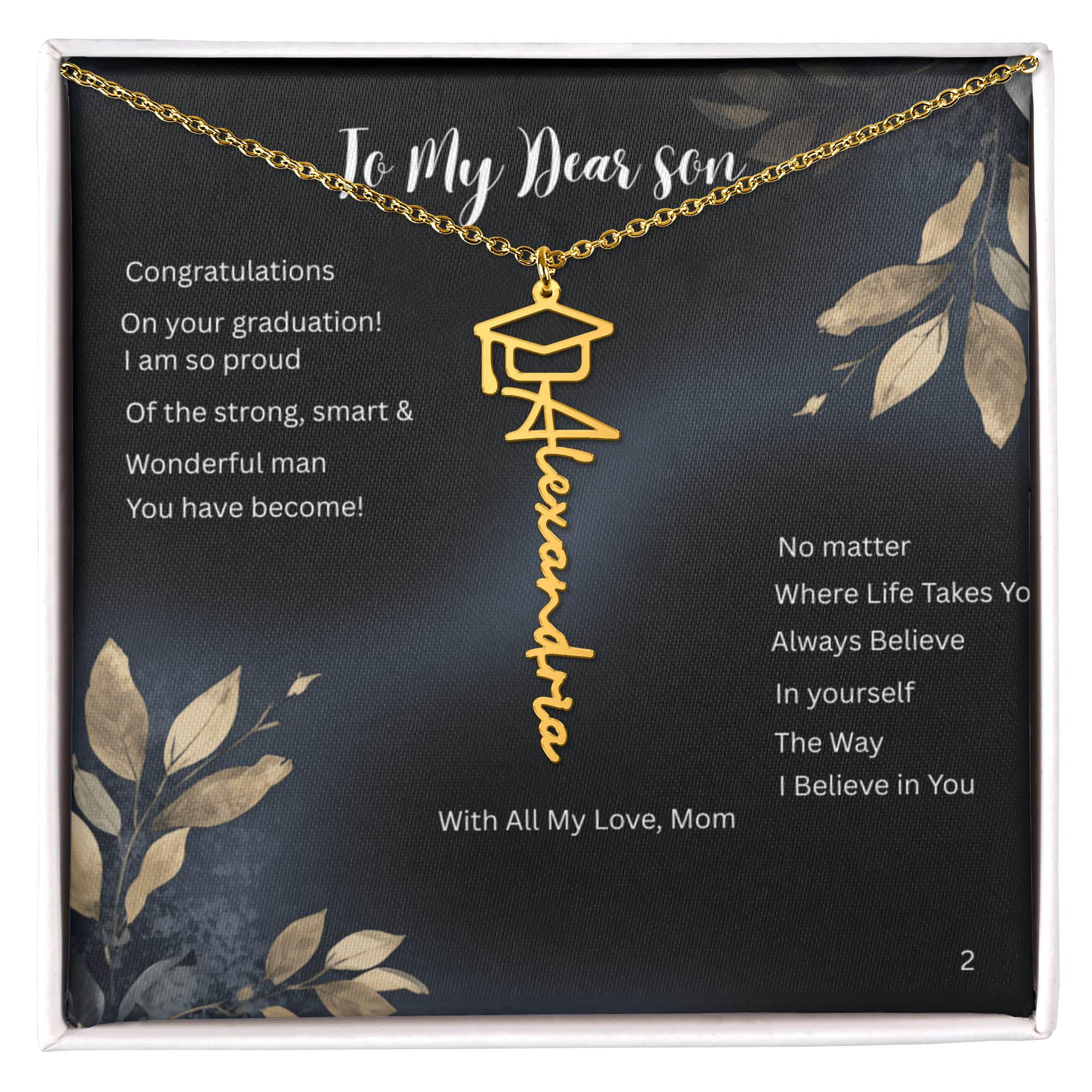 Celebrate a beautiful milestone with this meaningful Graduation Necklace for My Son - a symbol of pride, love, and the bright future ahead. This special piece is more than jewelry; it is a reminder of how far he has come and the amazing journey that lies before him.